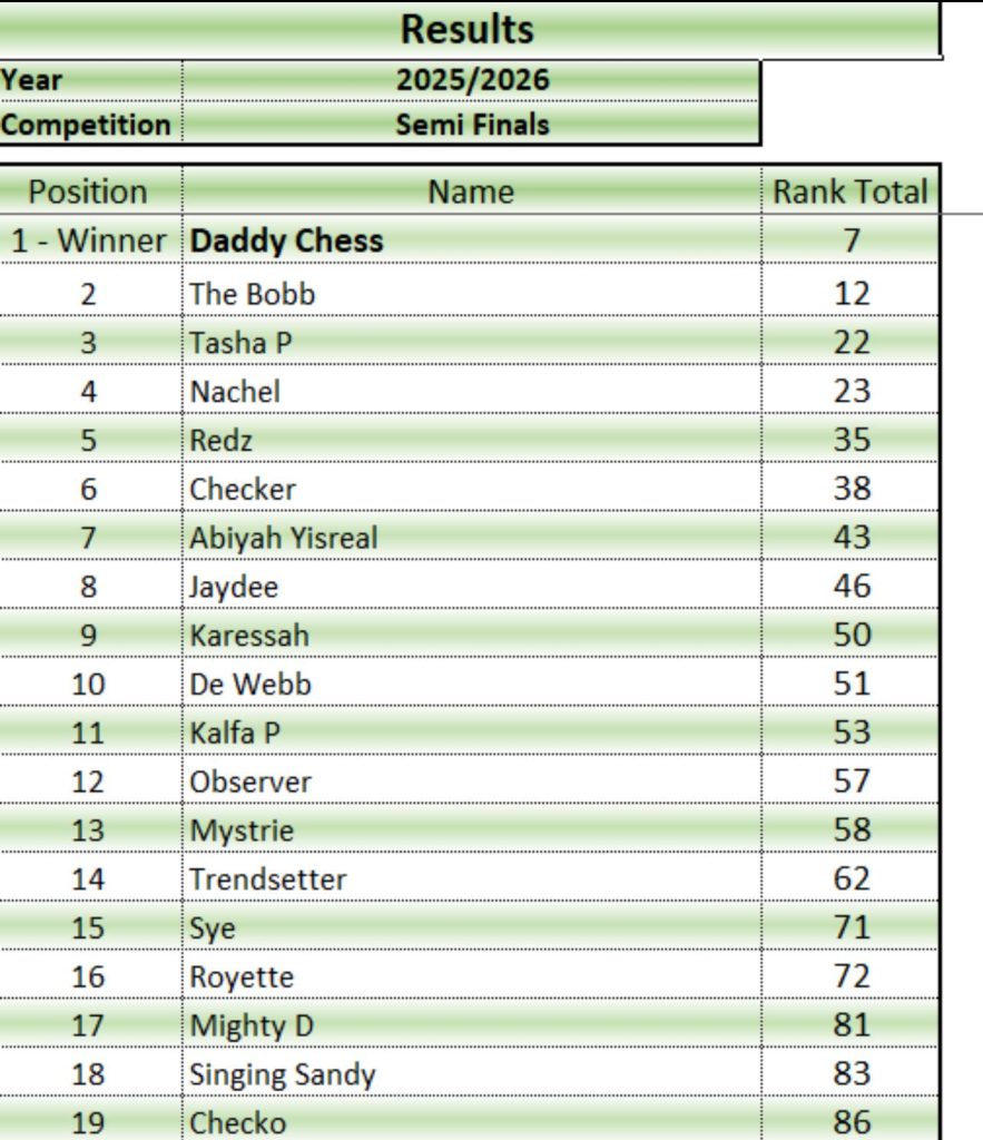 Police Officer Bernard Darroux, calypso name “Redz,” is the only newcomer to the 2026 Calypso Finals, set for February 14, 2026. Redz, who came in at number 15 at the Calypso quarterfinals with his rendition “River of tears,” was able to displace Mystrie and cop the number five spot at the semi-finals.