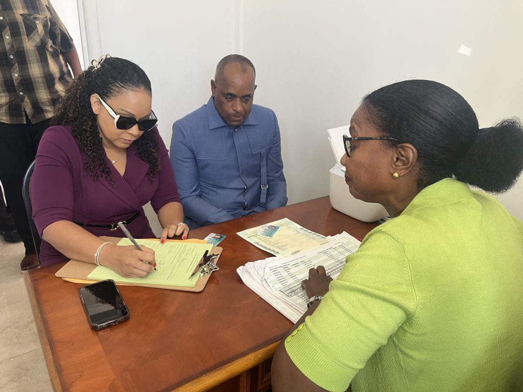 PM Skerrit and wife Melissia at the electoral office doing re-registration