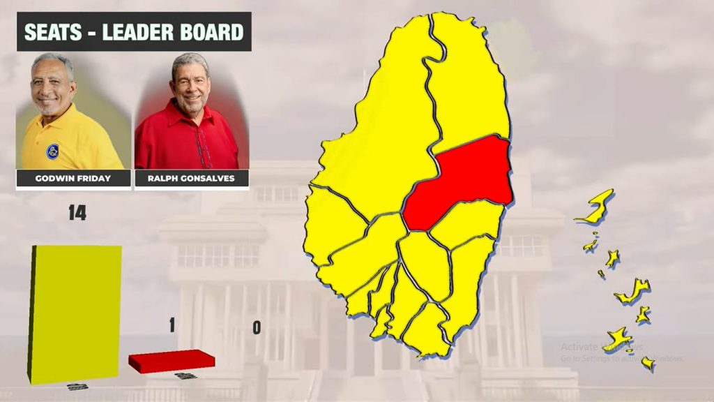 KINGSTOWN, St. Vincent, Nov 27, CMC – The New Democratic Party (NDP) stormed to an almost total landslide victory in Thursday’s general election, with preliminary results showing that the party had won 14 of the 15 seats in the Parliament.