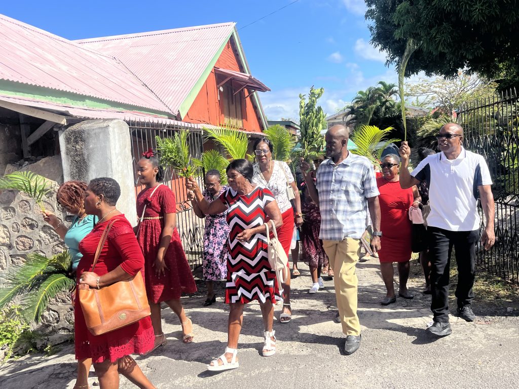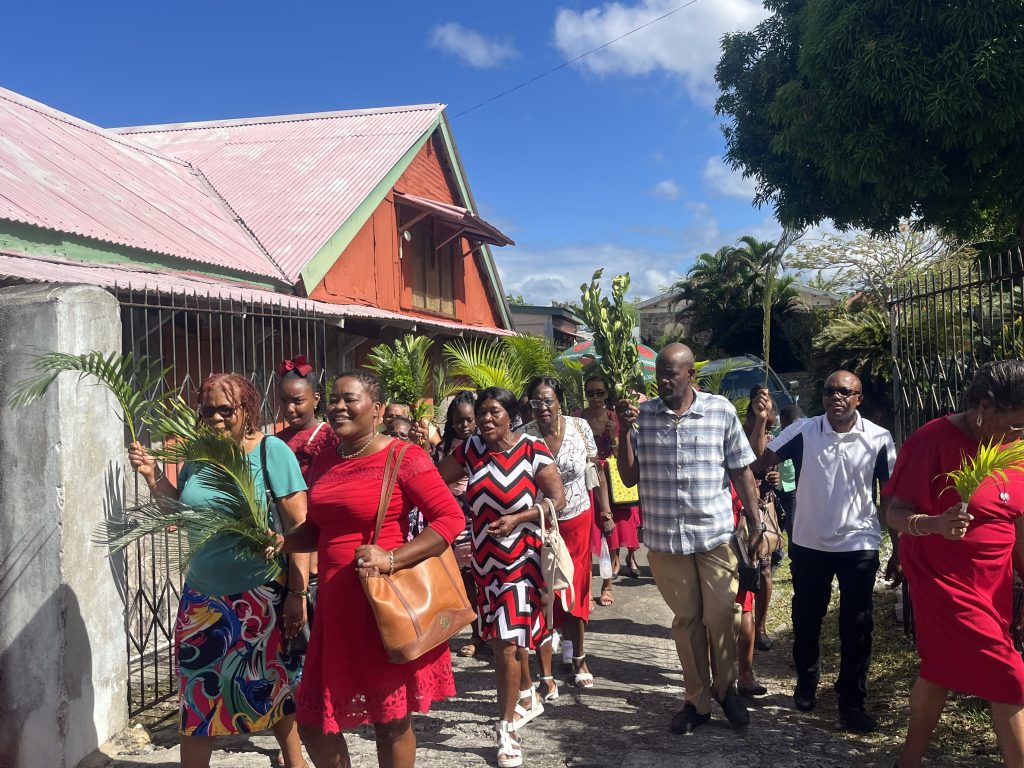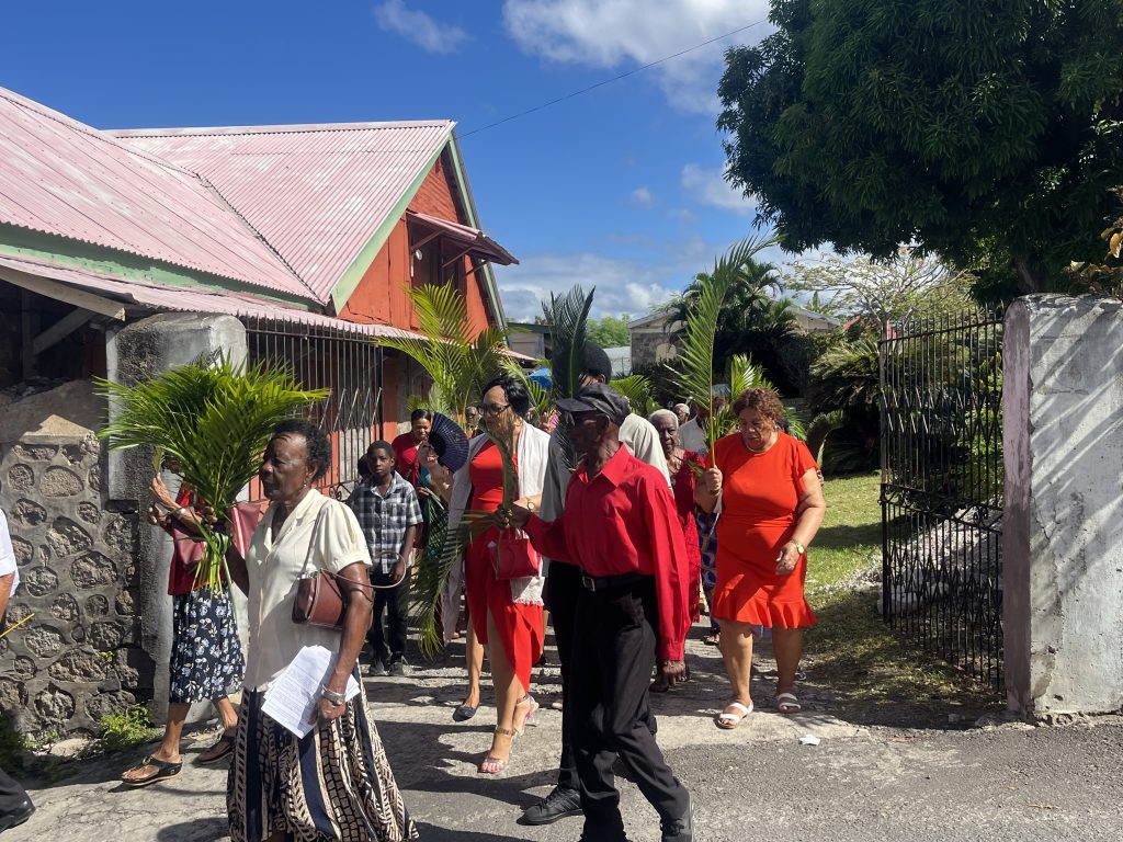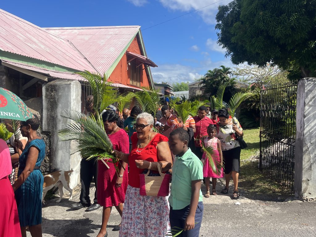 Catholics from the St Luke’s Parish in Pointe Michel celebrated Palm Sunday with a procession from the Prayer Garden to Our Lady of Salette Church in Pointe Michel.