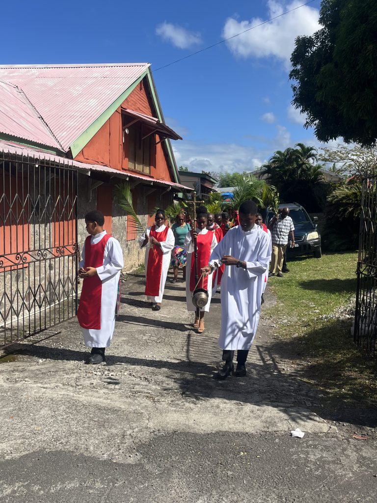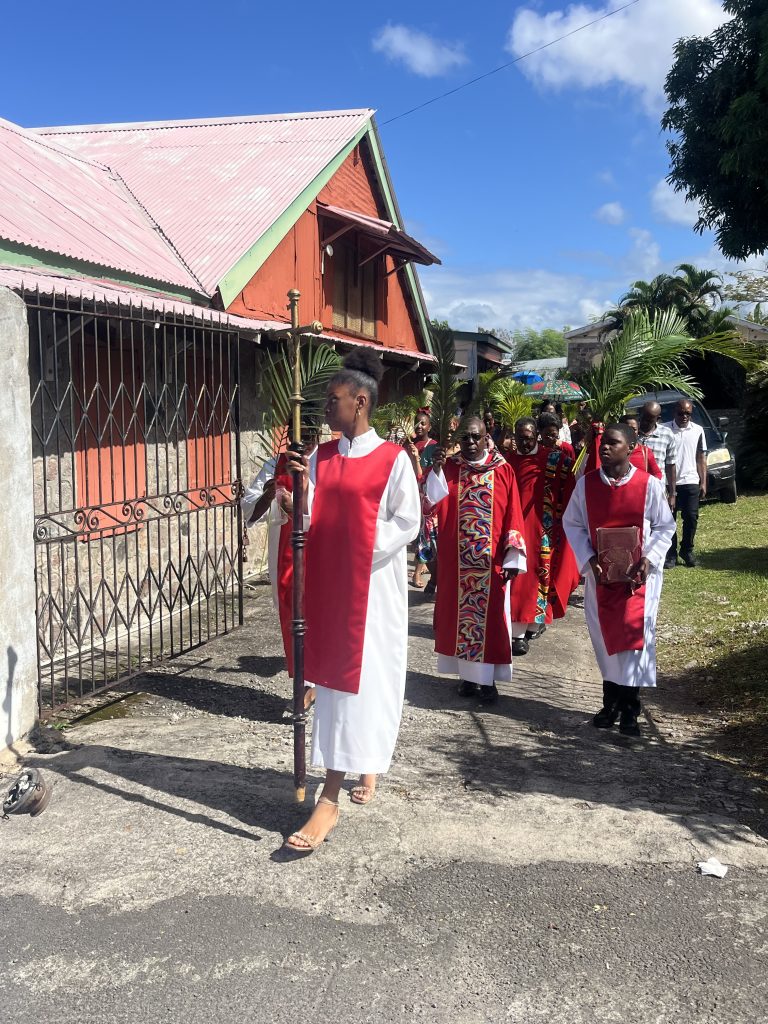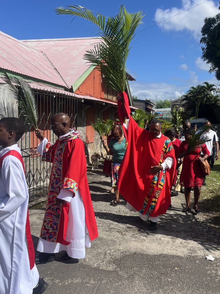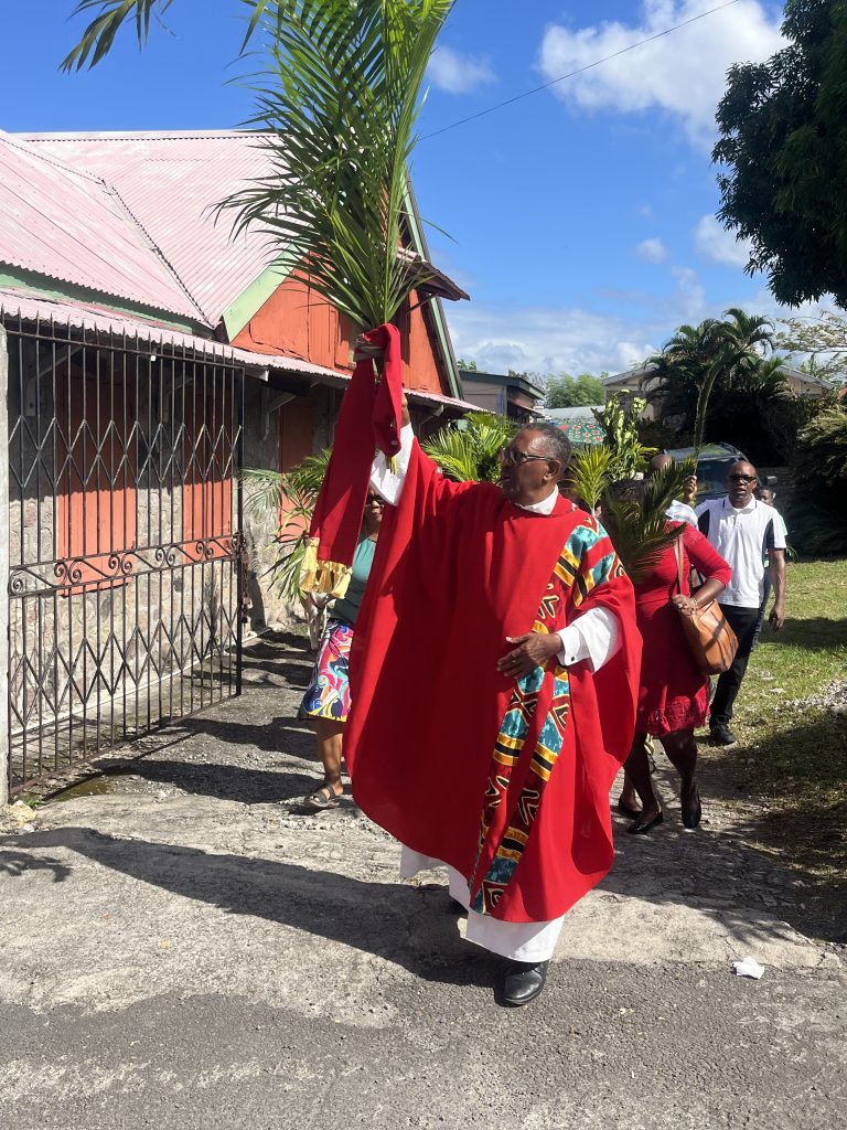 Catholics from the St Luke’s Parish in Pointe Michel celebrated Palm Sunday with a procession from the Prayer Garden to Our Lady of Salette Church in Pointe Michel.