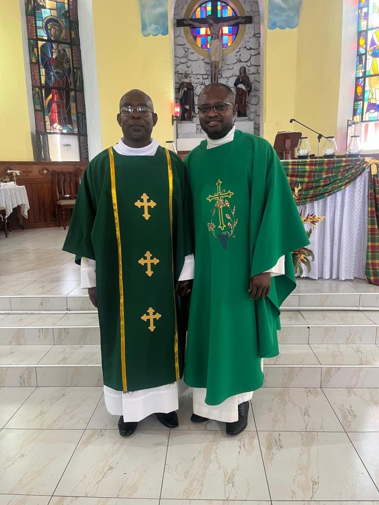 Deacon Degallaire with Parish Priest Fr. Mama in Pointe Michel after mass on October 19, 2025. Photo by Carlisle Jno Baptiste. All other photos by Clyde K. Jno Baptiste of CKJB Photography.