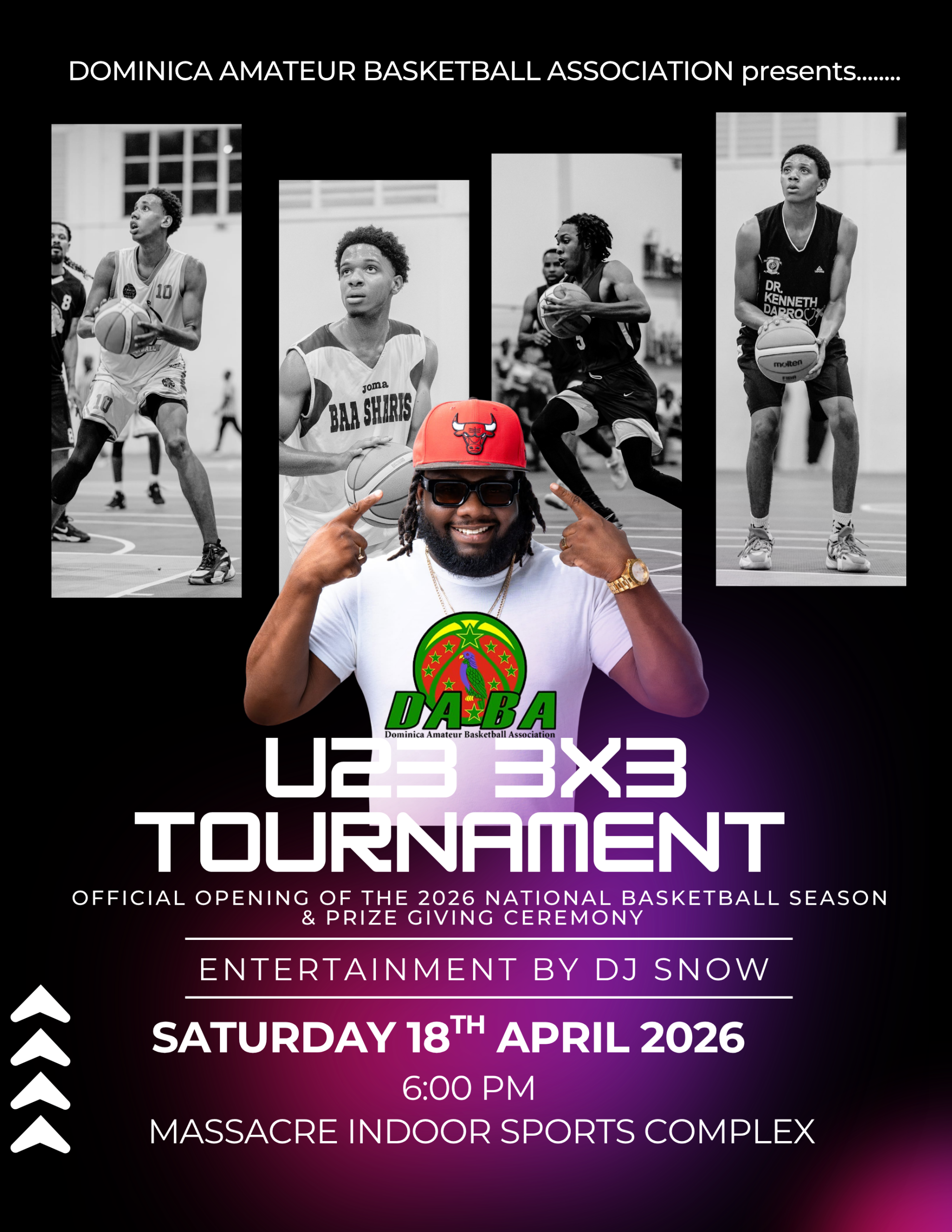 Roseau, Dominica – April 2026 – The Dominica Amateur Basketball Association (DABA) is set to officially launch its 2026 National Basketball Season with an exciting U23 3×3 Tournament and Prize Giving Ceremony on Saturday, April 18, 2026, at the Massacre Indoor Sports Complex, beginning at 6:00 PM.