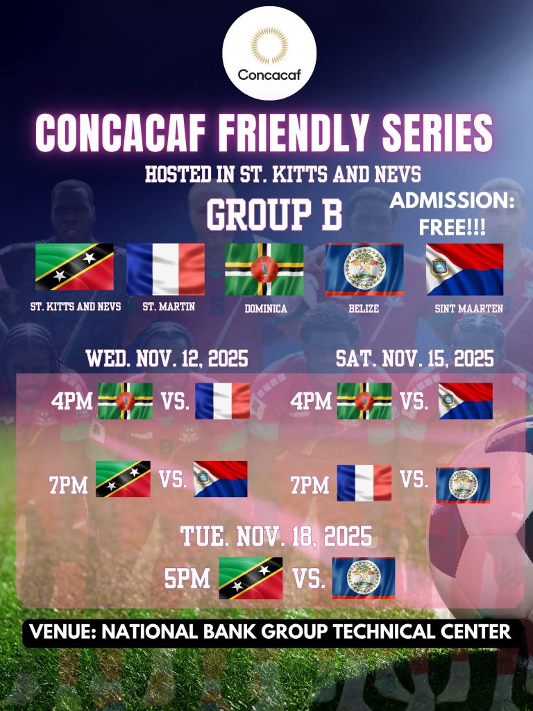 Dominica will play its first game on Wednesday, 13th November against Sint Martin (French), and will be back in action on Saturday, November 15th against Sint Maarten (Dutch).